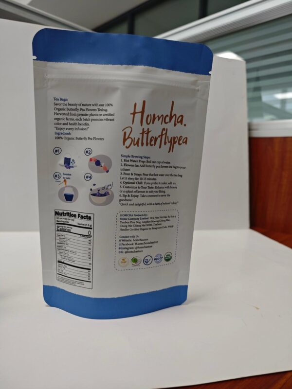 Enjoy nature in every sip with Homcha Organic Butterfly Pea Flower Tea Bags. Each tea bag contains 100% organically grown butterfly pea flowers, handpicked and naturally dried to preserve their vibrant blue color and antioxidant benefits. Just steep and enjoy a soothing herbal tea that can be served hot or iced. Add lemon for a magical purple twist!